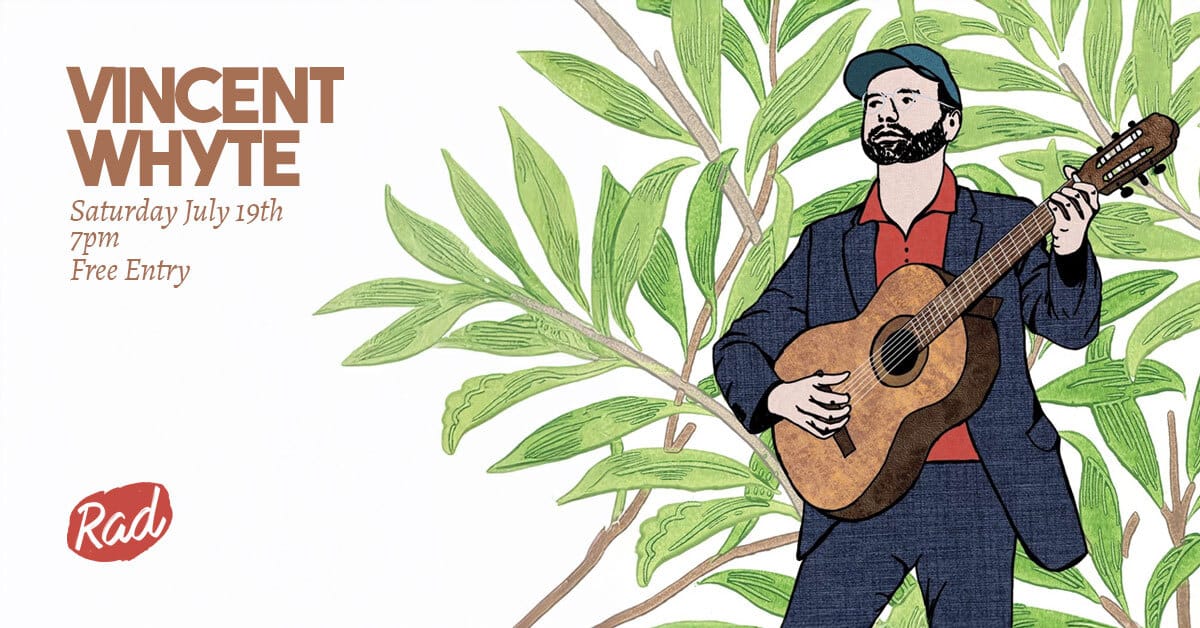 Catch singer-songwriter Vincent Whyte live at RAD Beer with his reflective, genre-blending tunes and signature Spanish guitar.