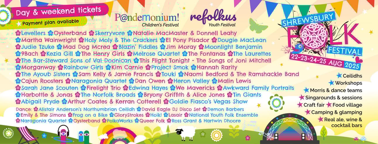 Grab weekend and day tickets via shrewsburyfolkfestival.co.uk