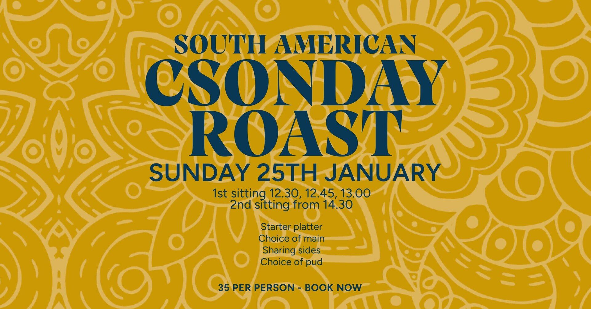 CSONS brings back its popular Sunday roast with a South American influence. Expect generous sharing starters, a choice of thoughtfully prepared mains including meat, fish and vegetarian options, seasonal sides for the table, and a selection of indulgent desserts.